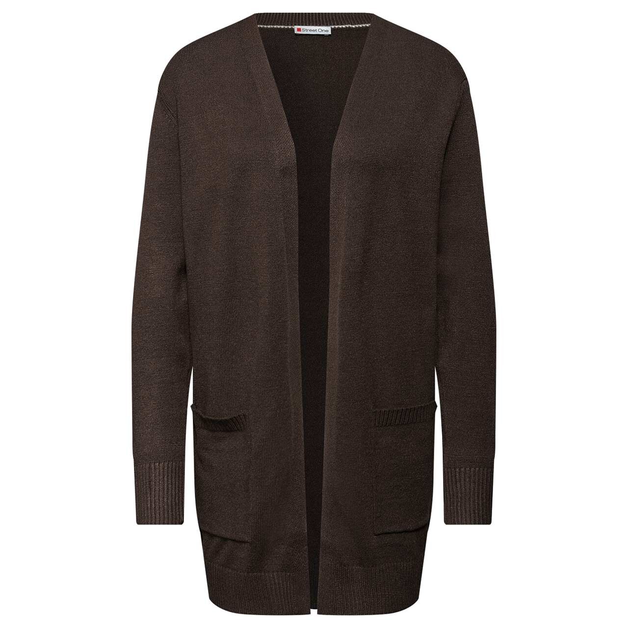 Street One Damen Long Strickjacke Cosy Open Cardigan dark nomad brown melange 34