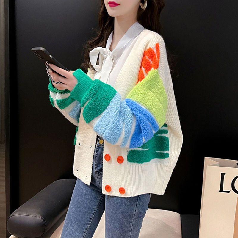 Bunte handtuchbestickte Strickjacke für Damen, Frühling und Herbst, verwestlichte Langarm Strickpullover mit lockerem Design, weiblich – zu niedrigen …