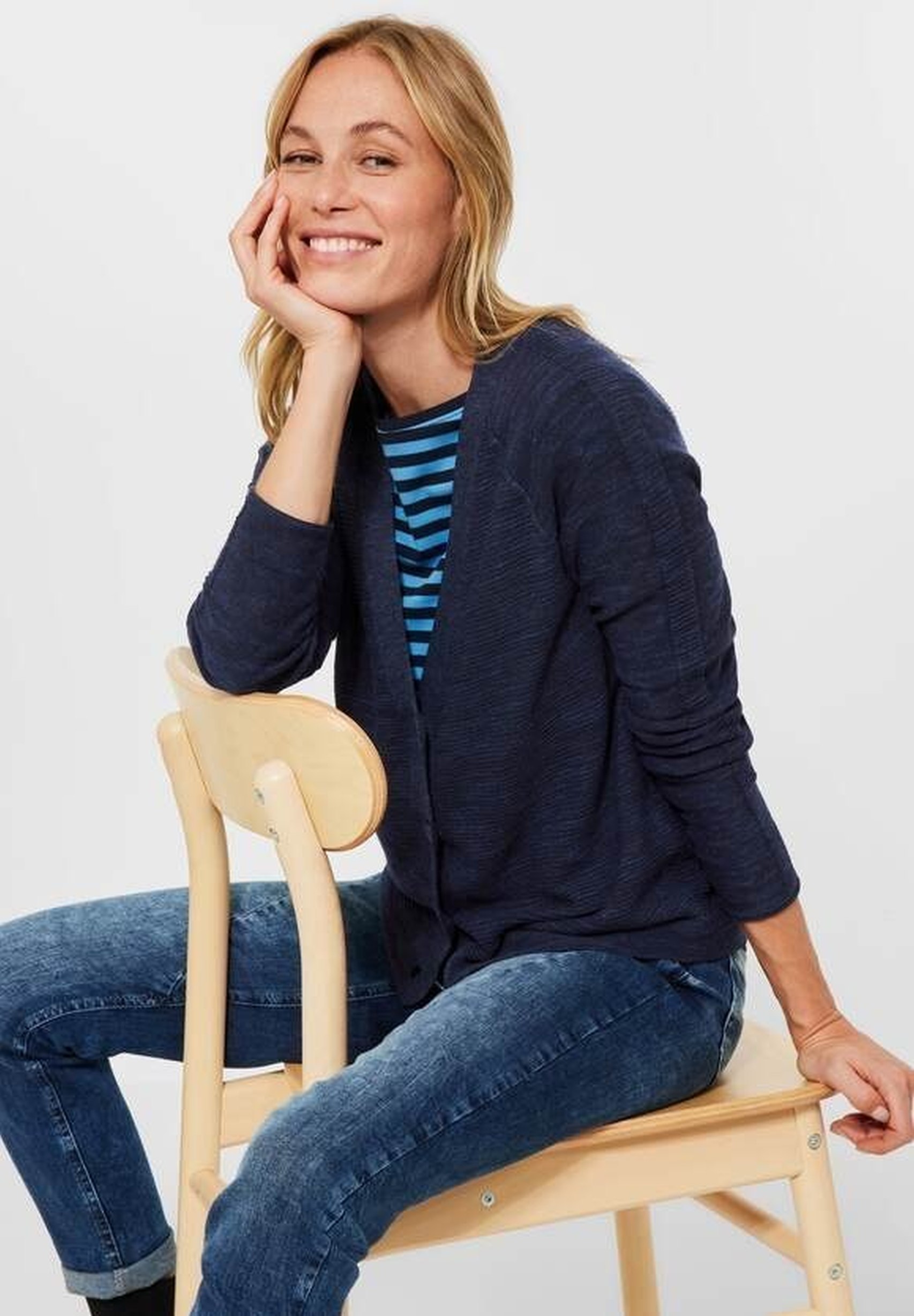 CECIL Strickjacke mit leichter Streifenstruktur deep blue