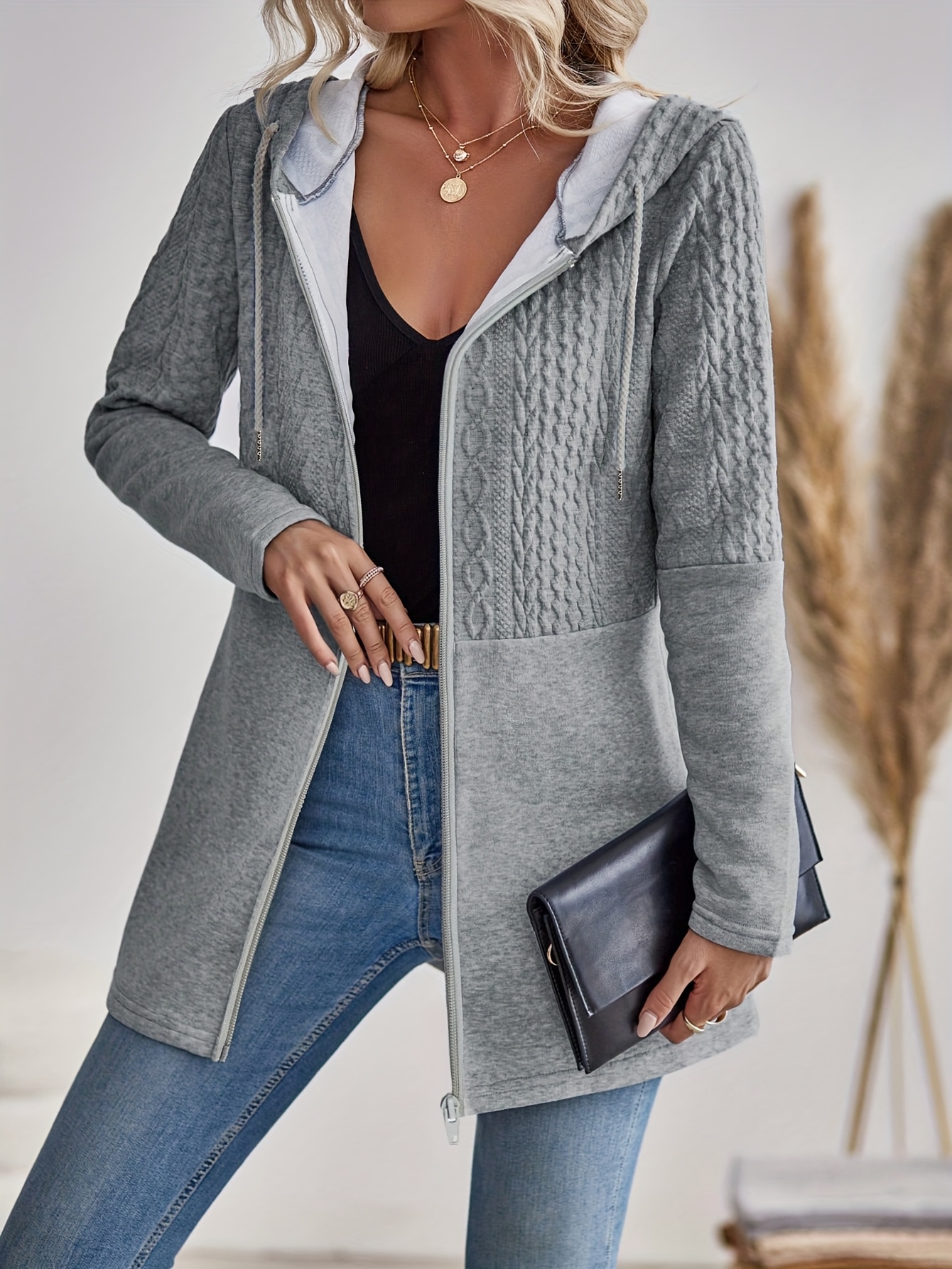 Stilvolle Lässige Graue Damen Cardigan mit Kapuze