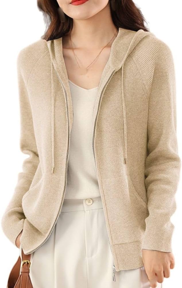 CuLtP Damen Cardigan Mit Kapuze, Leichter Damen Cardigan Mit Langen Ärmeln, Reißverschluss, Offener Vorderseite, Lässiger Cardigan Mit Taschen, …
