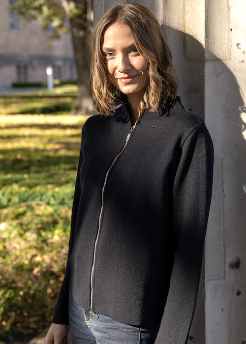 Strickjacke mit Reißverschluss Damen schwarz | Bernise | 999 | Merinowolle