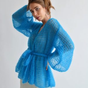 Hellblaue Strickjacke
