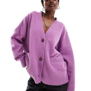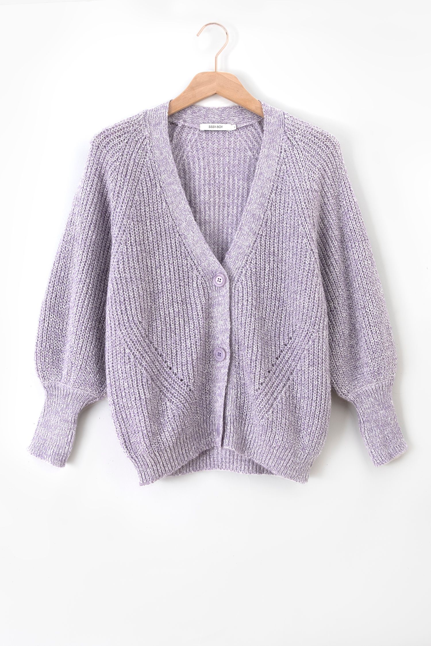 Strickjacke mit Dreiviertelarm und Lurex Details grau lila