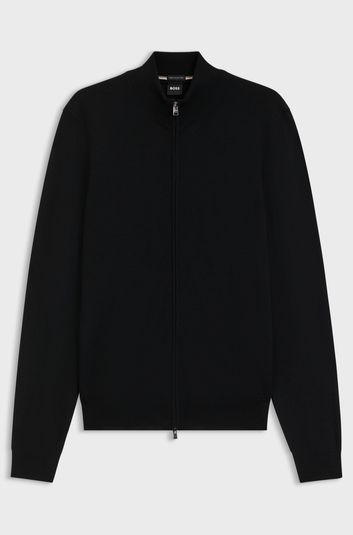 BOSS Strick Cardigan aus Schurwolle mit Reißverschluss Schwarz