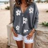 Kamelfarbene Strickjacke mit Blumenmuster und offener Vorderseite