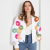 Pullover Damen, Strickjacke Damen Strickcardigan Langarm Strickmantel Grobstrickjacke Blumen Drucken Cardigan Kurze mit Knauf Strickpullover Winter …