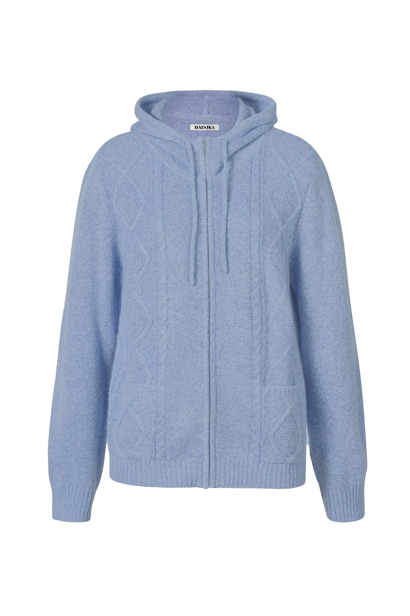 DAINIKA Strickjacke Damen Kapuzenjacke aus Kaschmir und Merinowolle mit feinem Zopfmuster Weiche Kaschmirjacke mit Kapuze und Reißverschluss