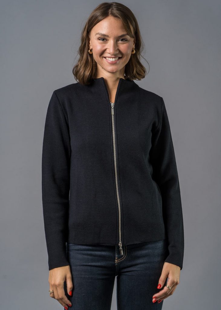 Strickjacke mit Reißverschluss Damen schwarz | Bernise | 999 | Merinowolle
