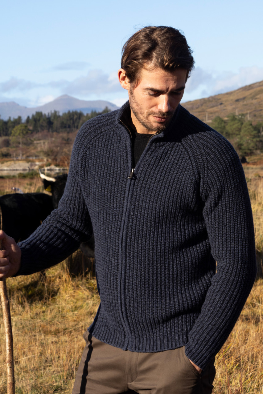 Fisherman out of Ireland Herren Strickjacke Pullover Blau Schwarz Rippstrick