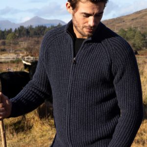 Curragh Herren Strickjacke mit geripptem Schalkragen Hafer