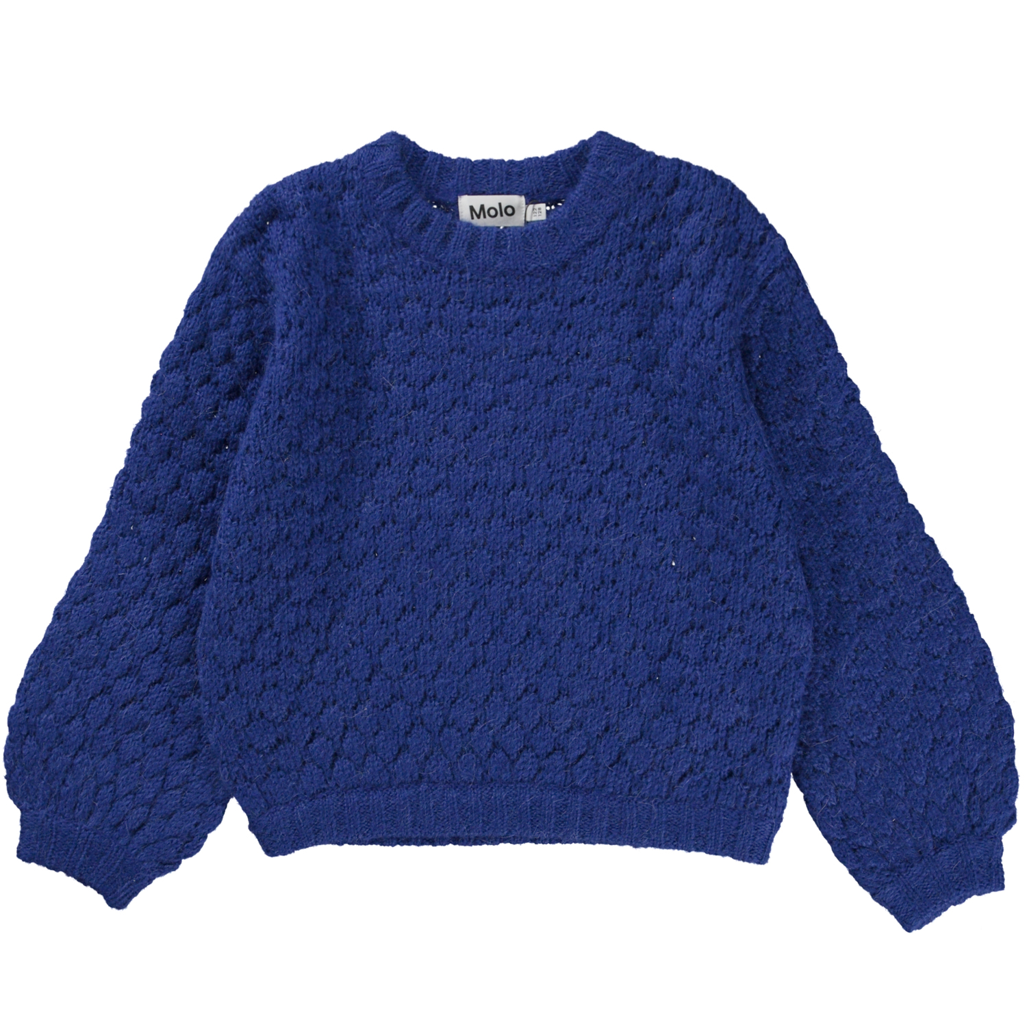 Gulia Twillight Blue Blauer Strickpullover aus Popcorn Strick Molo