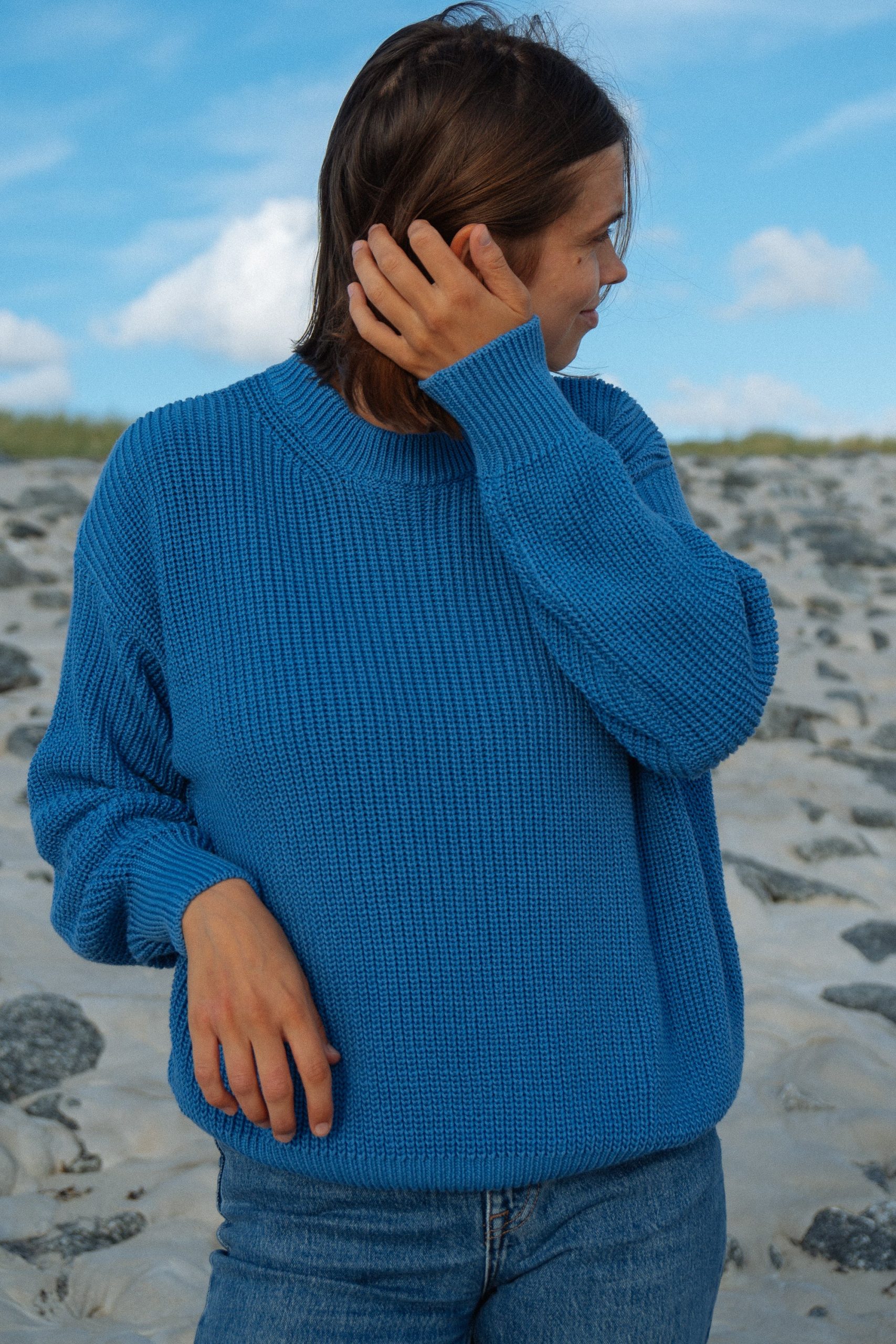 strickpullover blau