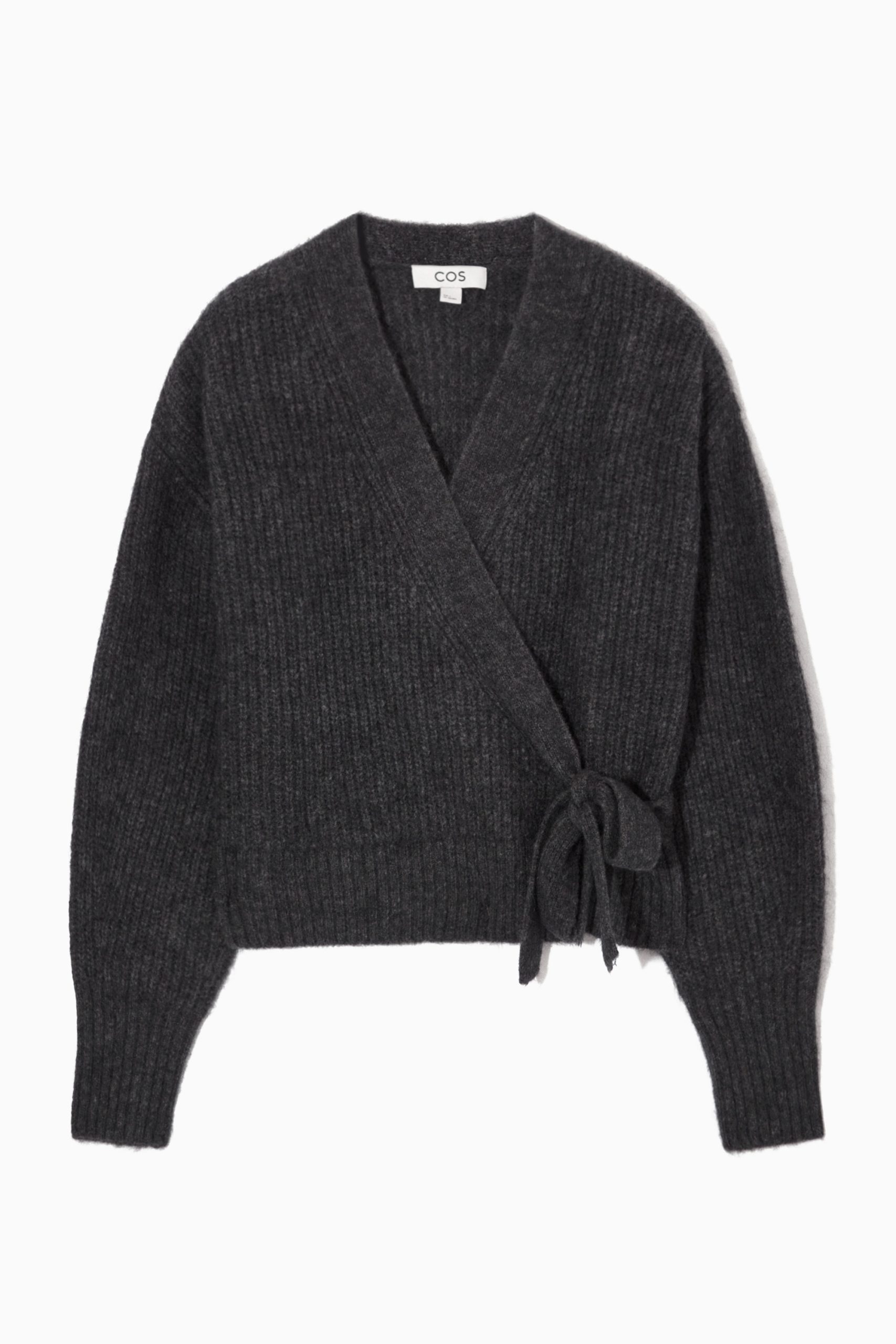 STRUKTURIERTE WICKEL STRICKJACKE AUS ALPAKA MIX DUNKELGRAU MELIERT | COS